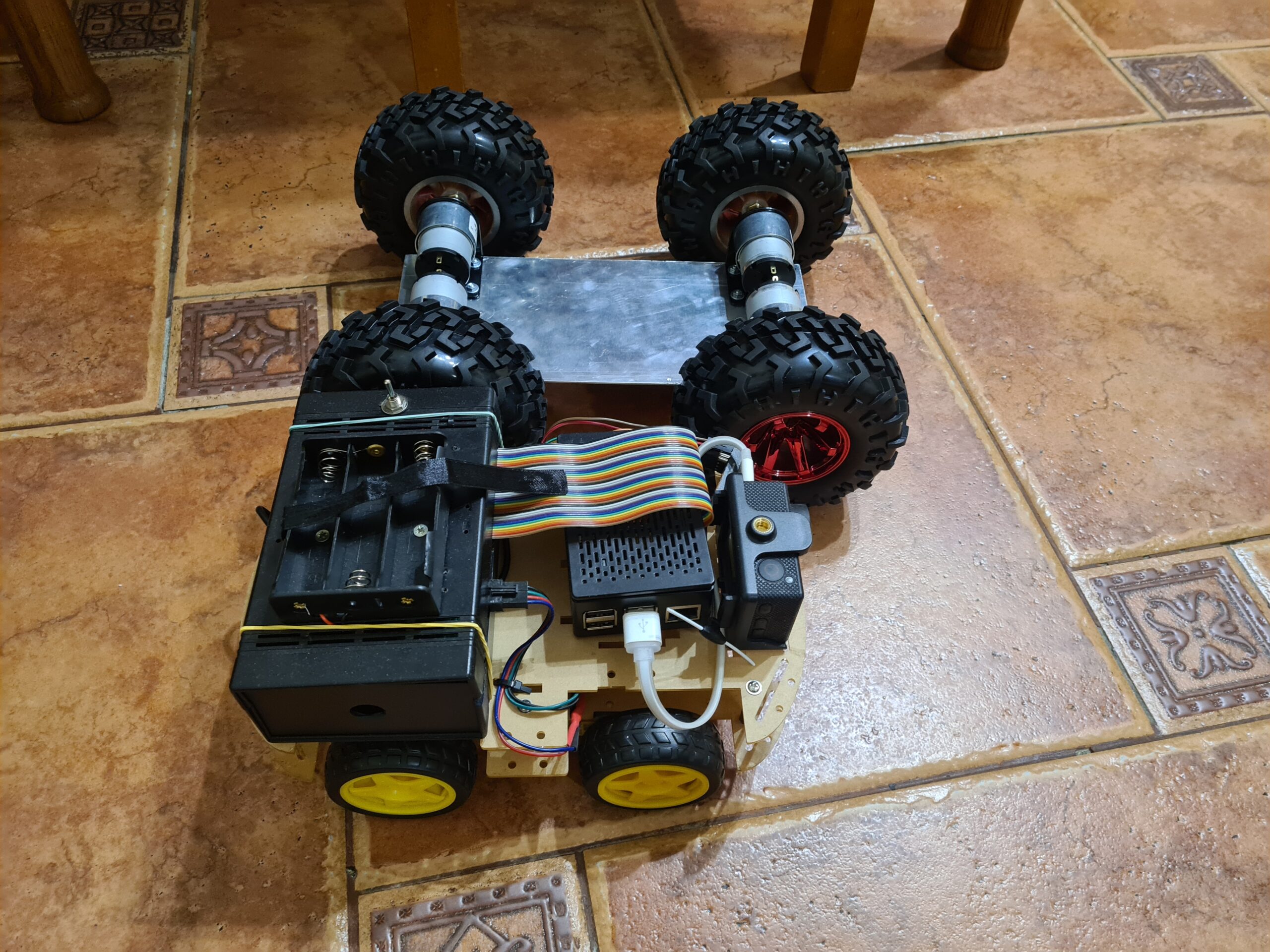 Из хотелок - было бы прикольно поиграться с OpenCV (например чтобы робот распознавал кота и сам отгонял его от двери), и пересесть на взрослое шасси (пушо китайское из оргстекла - слишком нэжное, и от него то и дело отламываются кусочки), например на такое: Dagu Wild Thumper 6WD All-Terrain Chassis